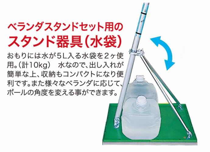 ポールの角度が変えられますので、ベランダには斜めに、お庭では垂直に、などが可能です。